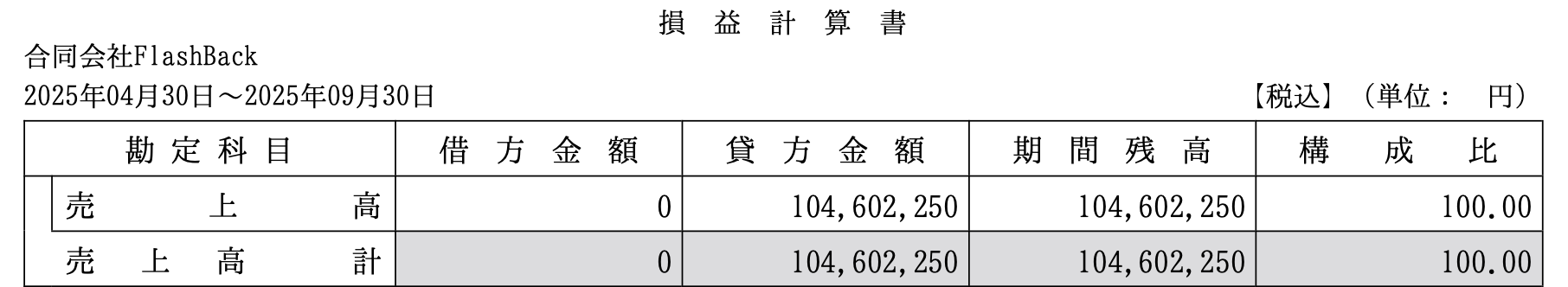 2025年4月30日〜9月30日までの半年間で売上高104,602,250円でした!