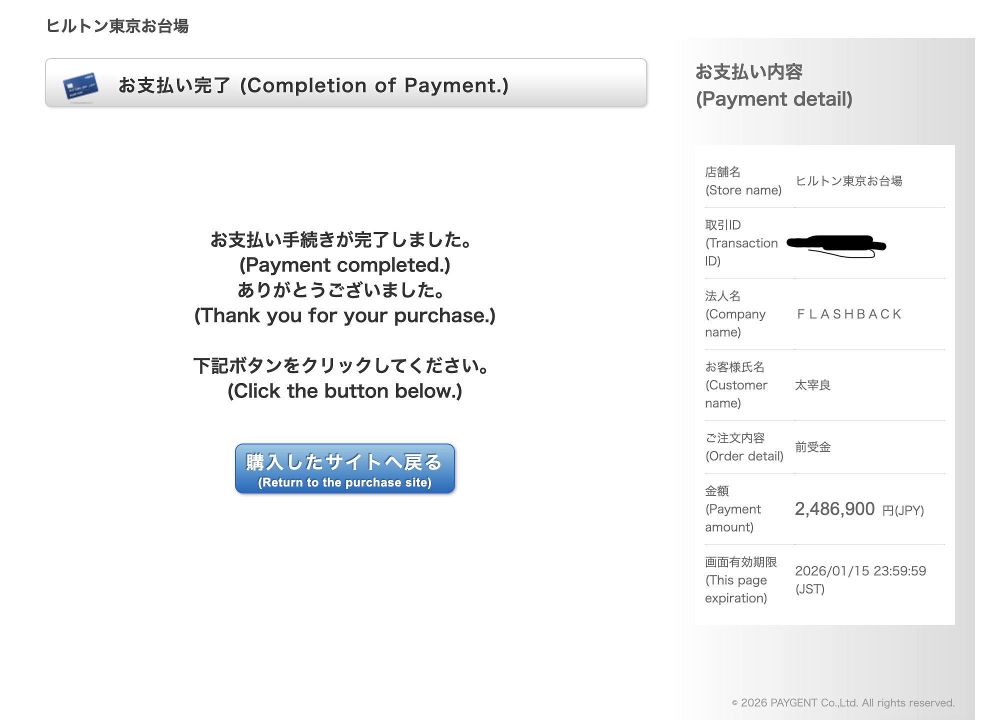 ヒルトンアメックスプレミアムカードで支払ったので、超ポイントつきました(笑)